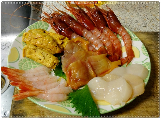 買了海膽~牡丹蝦~甜蝦~赤貝及干貝~