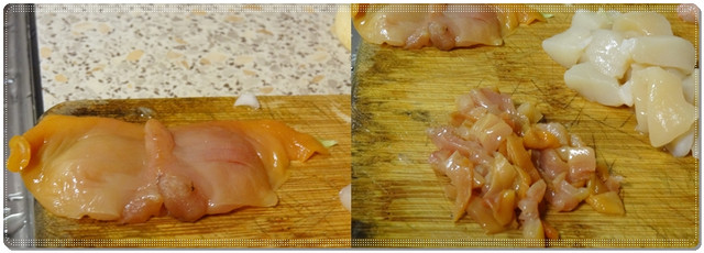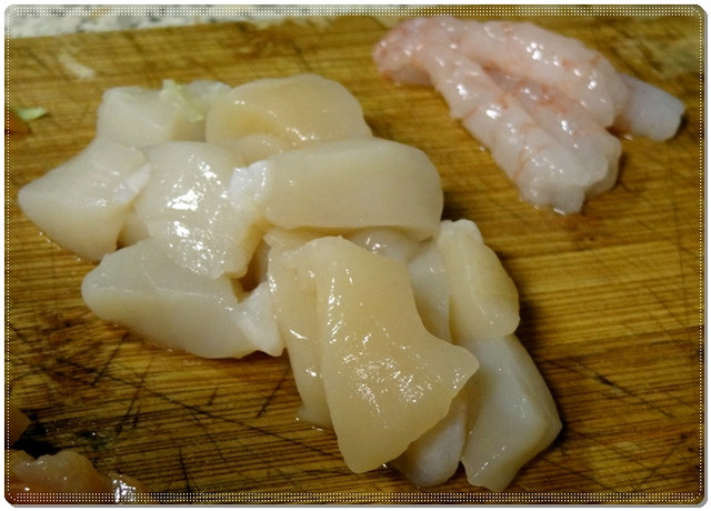 干貝也切小塊,但別切太小以免下鍋煎時縮的太小了。